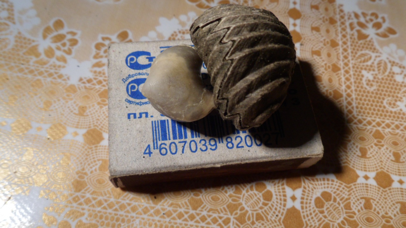 крупная прекрасная брахиопода получена по обмену от Вадима леффити и маленькая дагестанская окременелая верхний мел.
