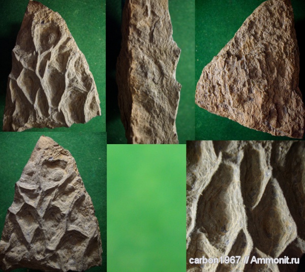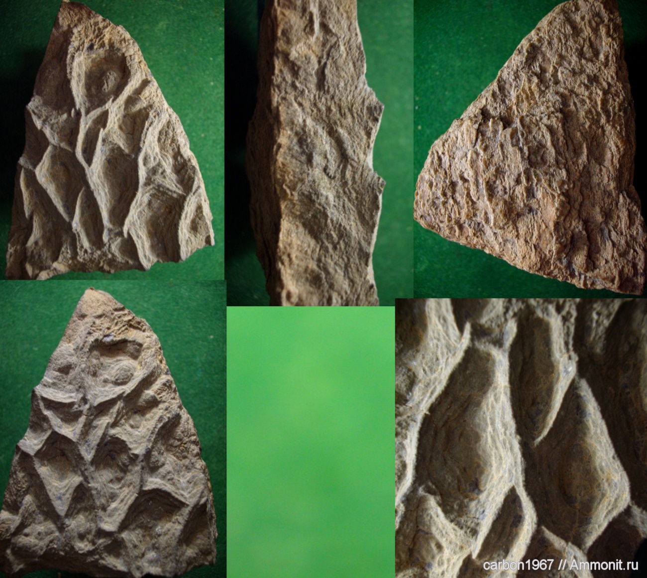 Если существенно глинистая часть образца соответствует кровле слоя (если я правильно понял – это правая фотография вверху), то что сформировало рельеф его обратной стороны? | ||||||