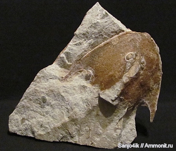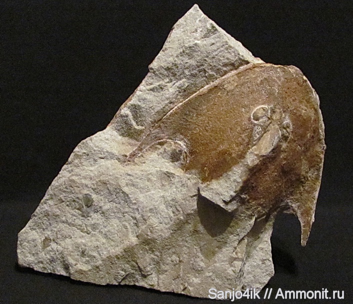 Еще один представитель цефаласписов хорошей сохранности из девонских отложений у с.Нырков, у данного образца не хватает головного шипа.Размер 10см.
