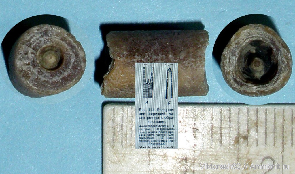 Как мне удалось выяснить - это разрушенная передняя часть ростра с образованием псевдоальвеолы ( том 6 "Основ палеонтологии" стр.150 ). На фото добавил вставку. | ||||||