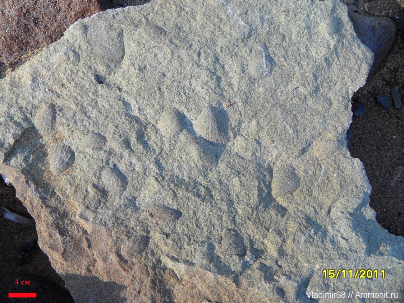 Больше похоже на Monotis-образное что-то, нежели на брахиопод. И песок брахиоподы не любят, там им зацепиться не за что. | ||||||
