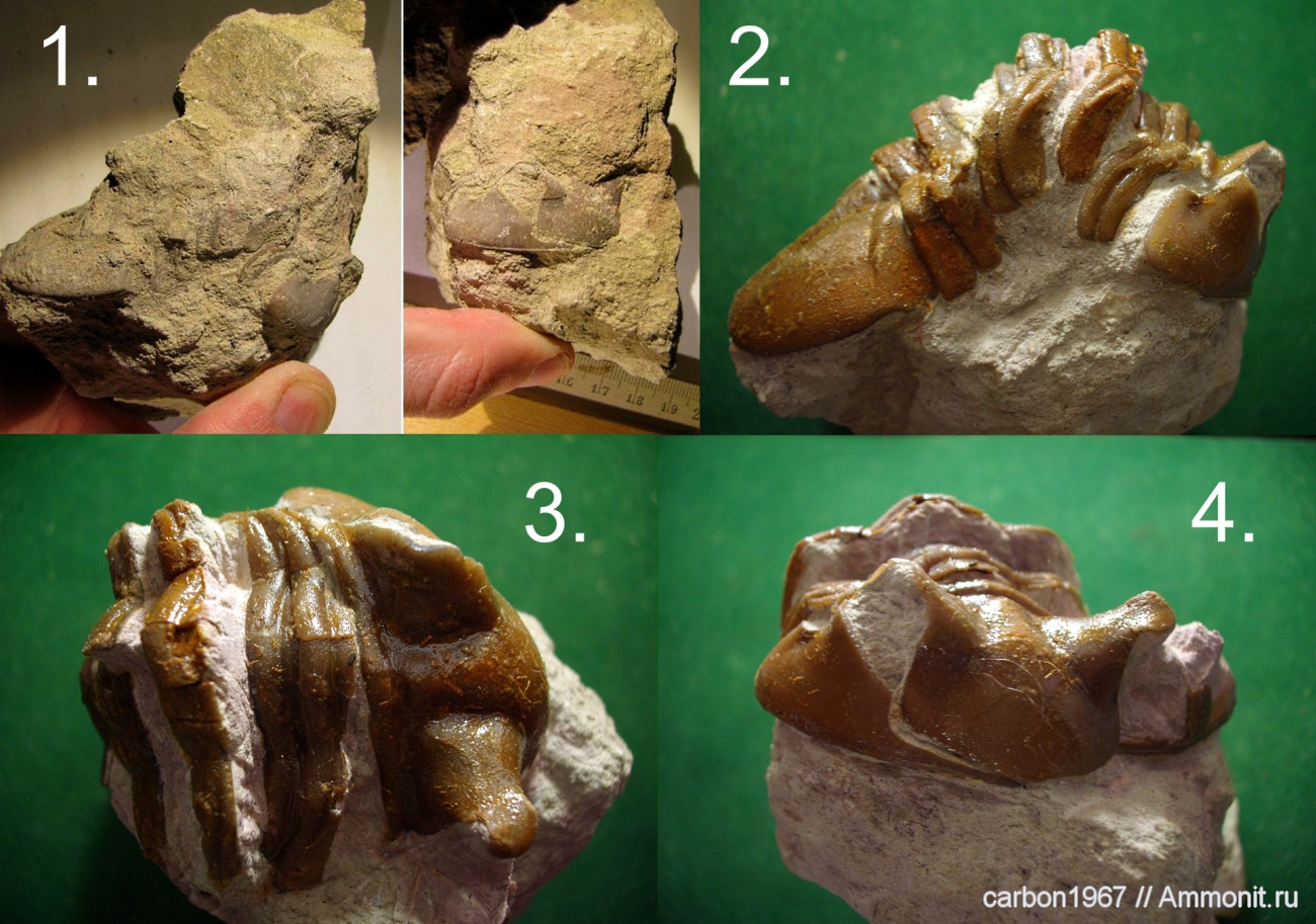 Красота! Вот кстати ответ на возникавший недавно вопрос о линьке кристаллических глаз трилобитов. Выходит, что глаза не линяли, а просто высвобождались из панциря. "Крышка" глаза панцирная тут есть, а самих глаз с линзами нет - они оставались на теле и после линьки. | ||||||