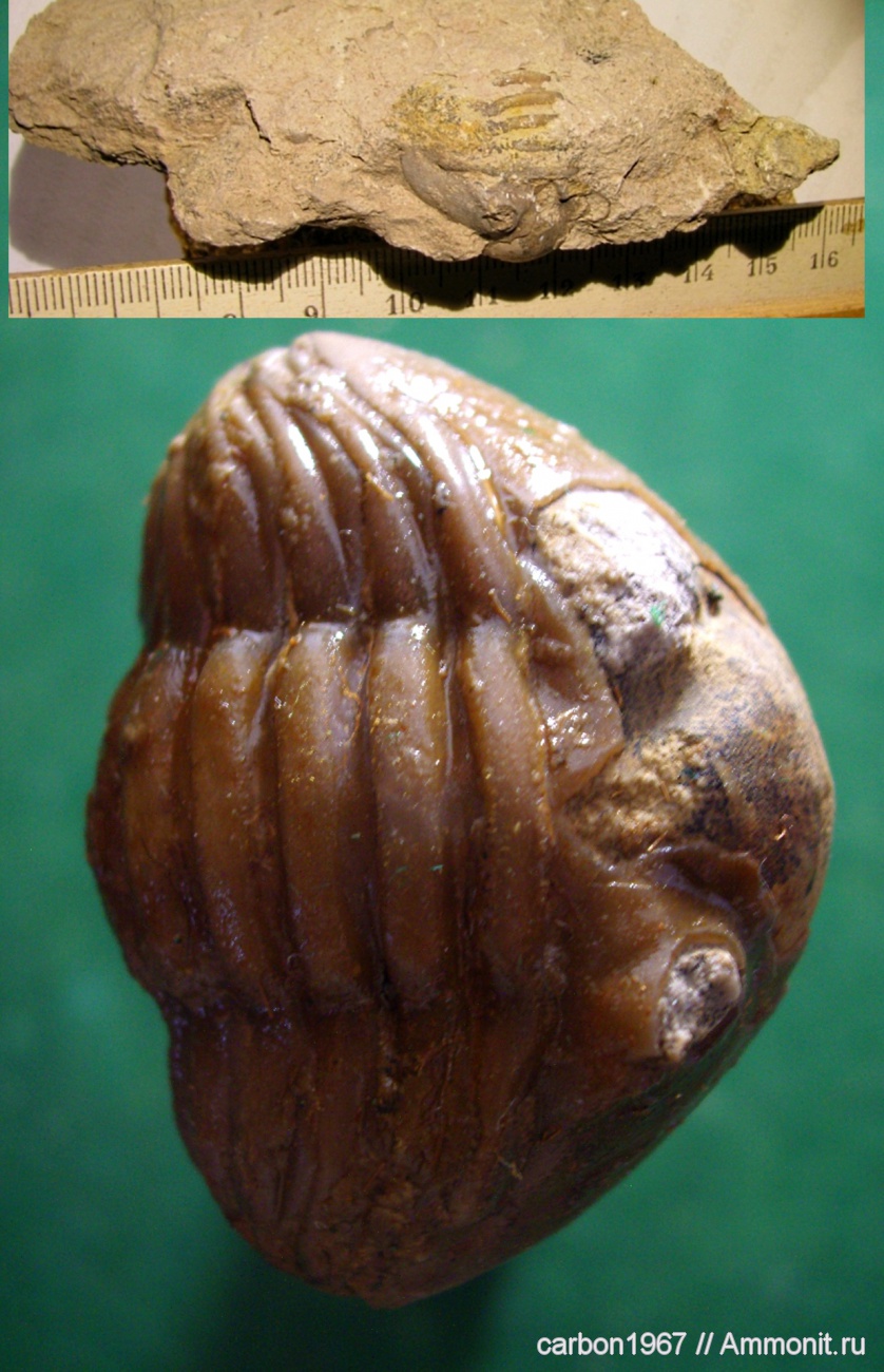 это может быть частным случаем, но не думаю, что это линьку в норках можно применить к трилобитам, представленным, например, на этом сайте. Хотя в ордовике Ленинградской области встречаются ихнофоссилии, интерпретируемые как норки трилобитов, обычно они не содержат панцирей. Процесс линьки хорошо может быть запечатлен на тонких илах - образцы из сланцев тому пример. В нашем ордовике такое событие редкость. | ||||||