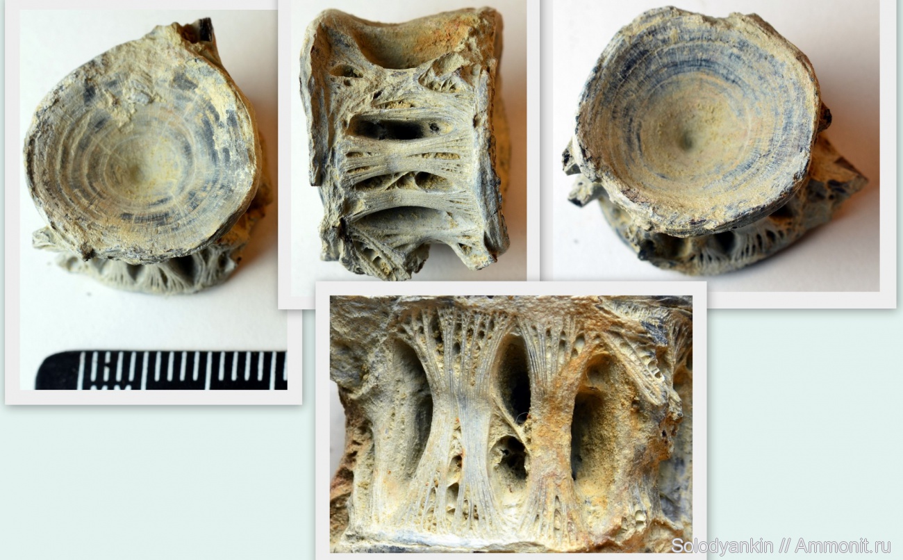 Глядя на это невольно вспомнил спор о гигантских динозаврах зауроподах - о том, жили ли они на суше или подобно бегемотам вели полуводный образ жизни. Одним из основных аргументов сторонников сухопутной гипотезы было как раз строение позвонков. "Раз позвонки у них ажурные, с большим количеством пустот, максимально облегченные, значит они могли жить только на суше, у всех водных животных позвонки монолитные, им бороться с лишним весом костей не надо" - говорили сторонники этой версии. А тут как раз явный пример обратного - рыба явно жила в воде, а насколько легкие ажурные позвонки! | ||||||