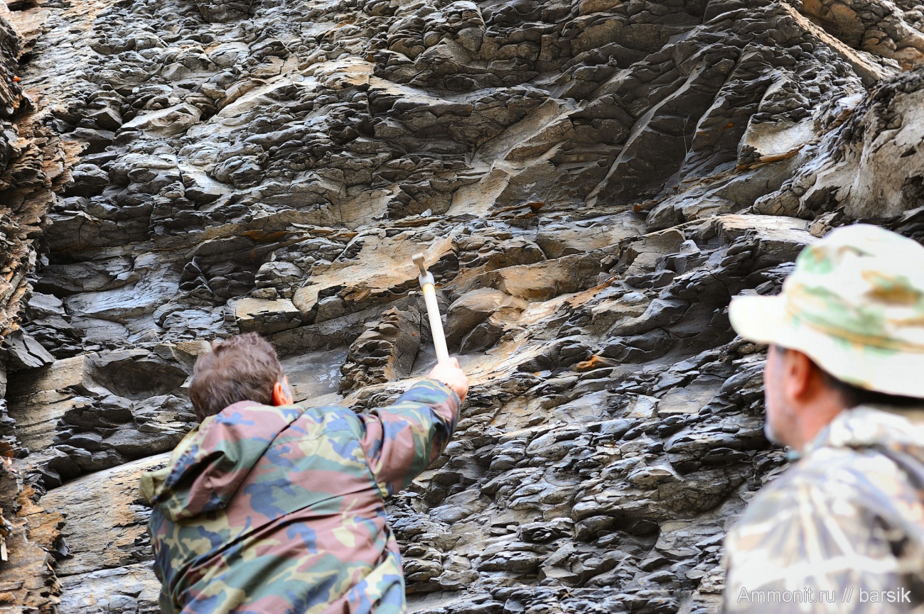 Поиск ископаемых в юрских слоях обычно связан с элементами скалолазания. Иногда что-то можно рассмотреть только с помощью оптики и высоко над головой. Как на дополнительном фото Если это на высоте 15-20м, то остается только посмотреть.