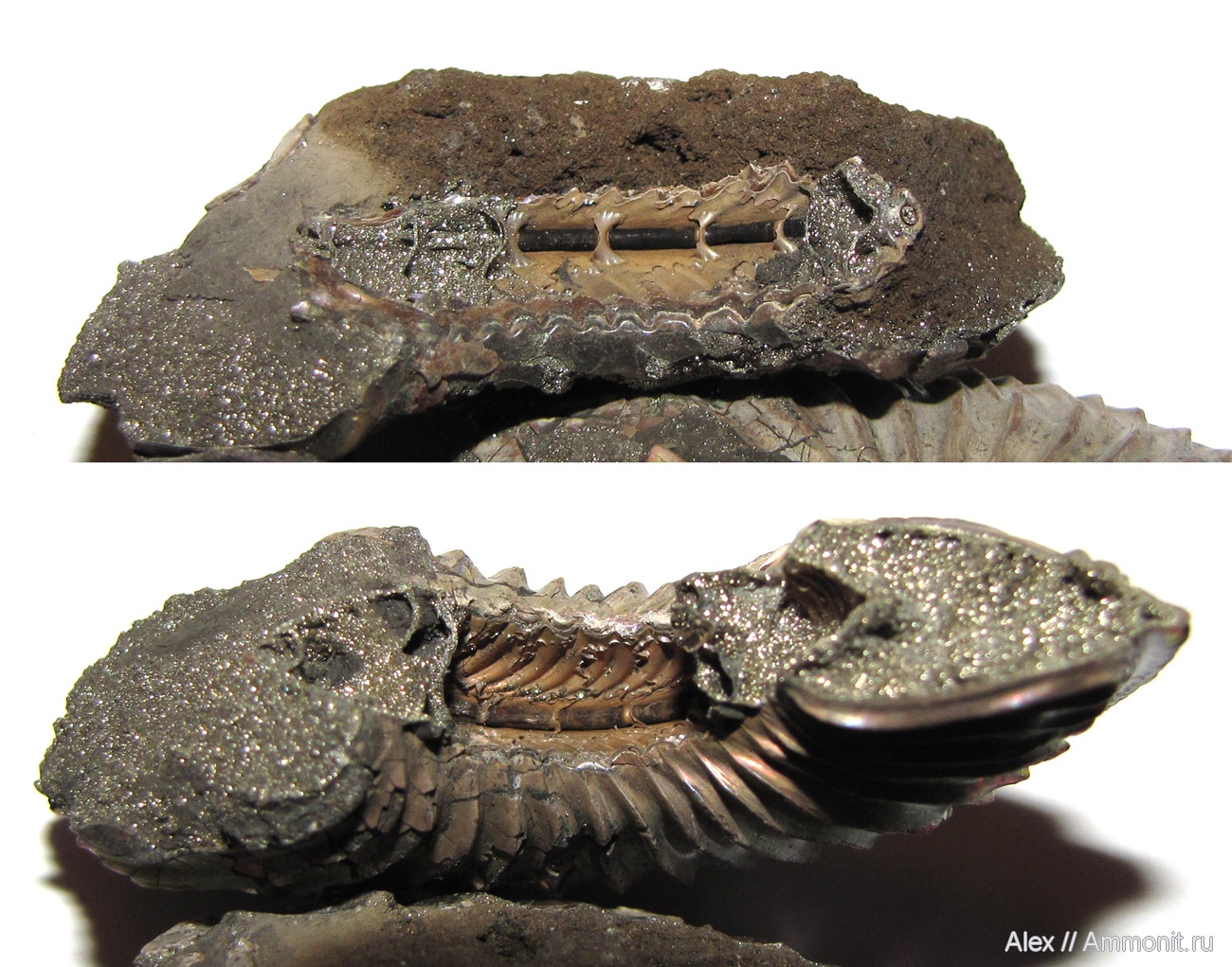 На самом деле процесс пиритизации никак напряму не связа с аммонитами. Просто в центральной России некоторые слои с аммонитами содержали большое количество веществ, необходимых для образования пирита. Слои с трилобитами, известные в нашем карбоне и Питерском ордовике ничего похожего не содаржат, поэтому и пирита там не получилось. А то были бы пиритовые эндоцерасы как минимум. | ||||||