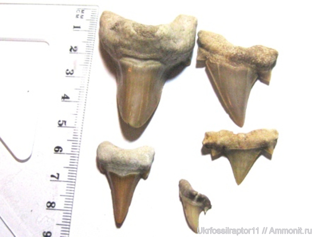 Справа посередине позднемеловая Cretolamna biauriculata | ||||||