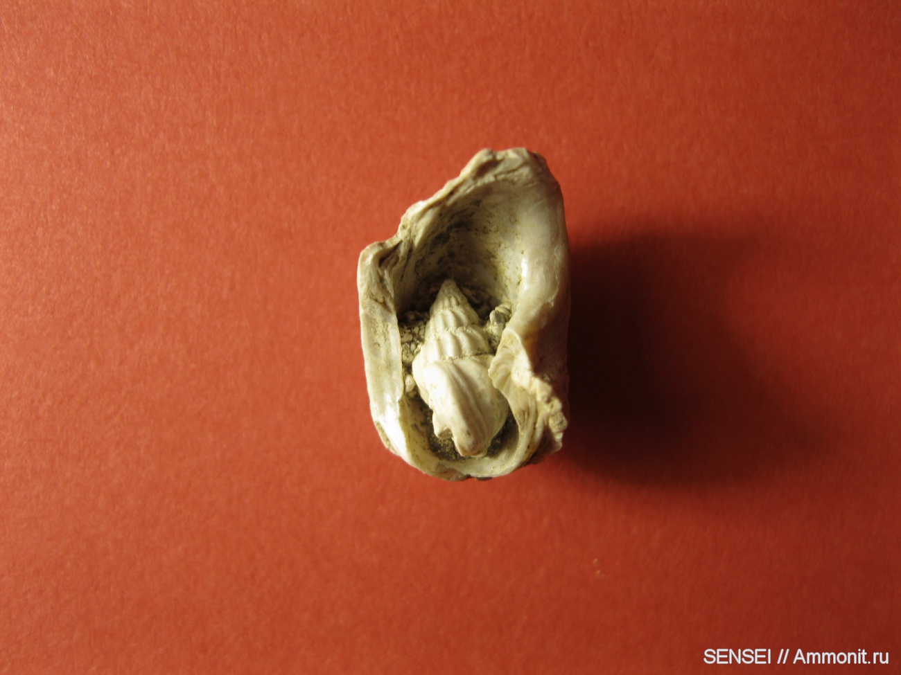 В обломке гастроподы расположилась Cerithiidae ,а в той еще какой-то моллюск этакая русская матрешка.Эту композицию нашел уже готовой только отмыл.