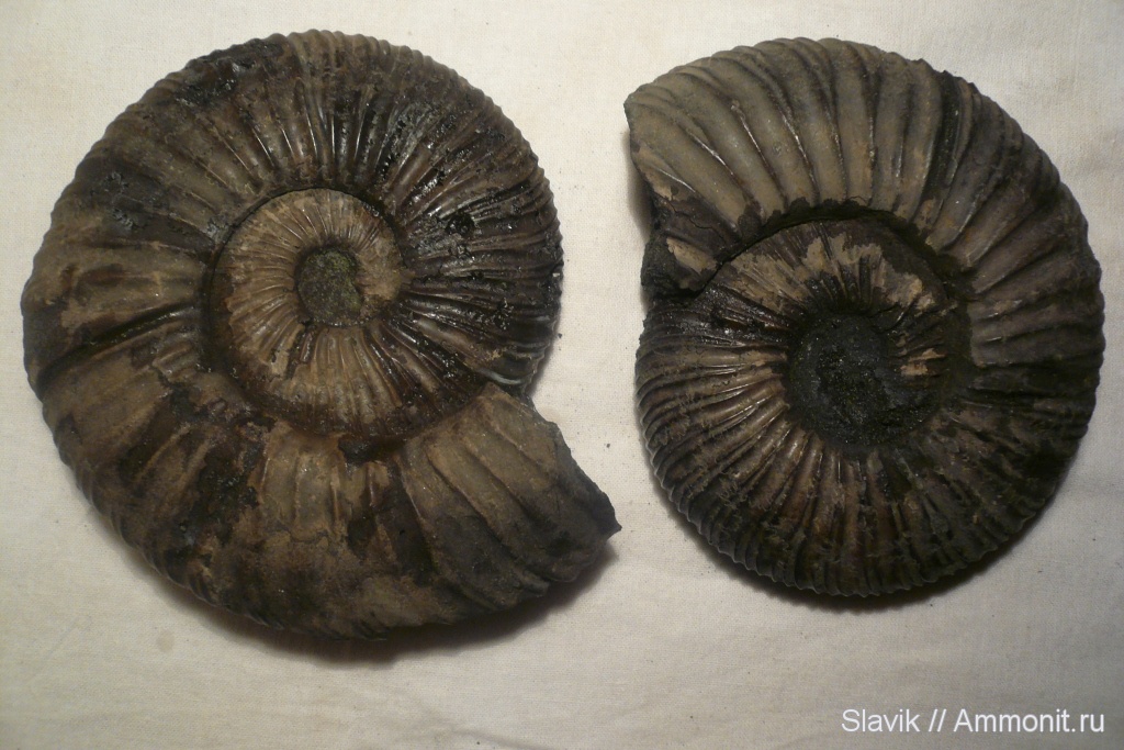 Два аммонита v. virgatus. 11 и 10 см. Сборы 20. 12. 2011.