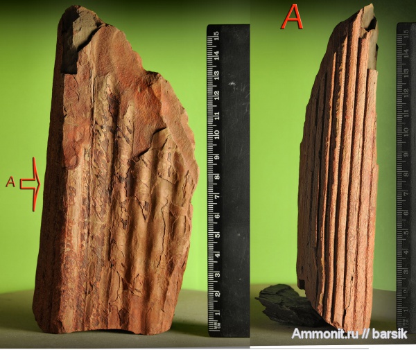 На левой проекции очертания слоя коры имеет привычную форму , а на правой ( Проекция «А») эту кору сплющило, как меха гармошки, они стали тоньше и чаще, так можно и до каламита «додавить» эту бедную сигиллярию. Наверное, многие загадочные образцы имеют знакомые названия, но условия сохранения придают им непривычный вид.