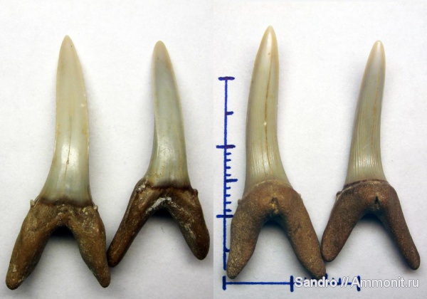 2 зуба песчаных акул. На эмали заметна небольшая струйность.