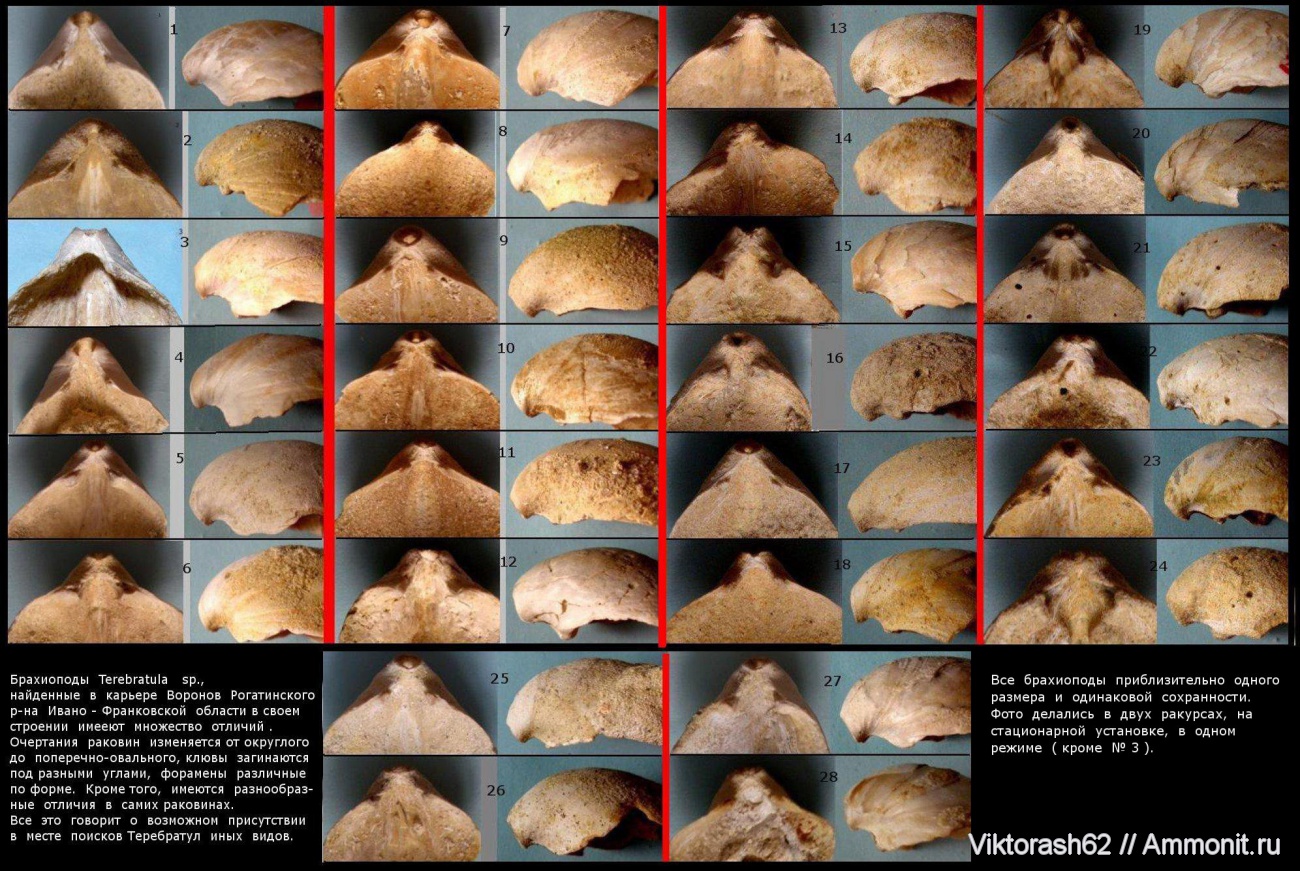 Не удержался и выставил коллаж с 28 брахиоподами Terebratula sp. ( каждая в двух проекциях ). Изучать их надо долго и кропотливо, но знаний, хоть и читаю о них много, не хватает. Пока сделал так, а далее посмотрим.