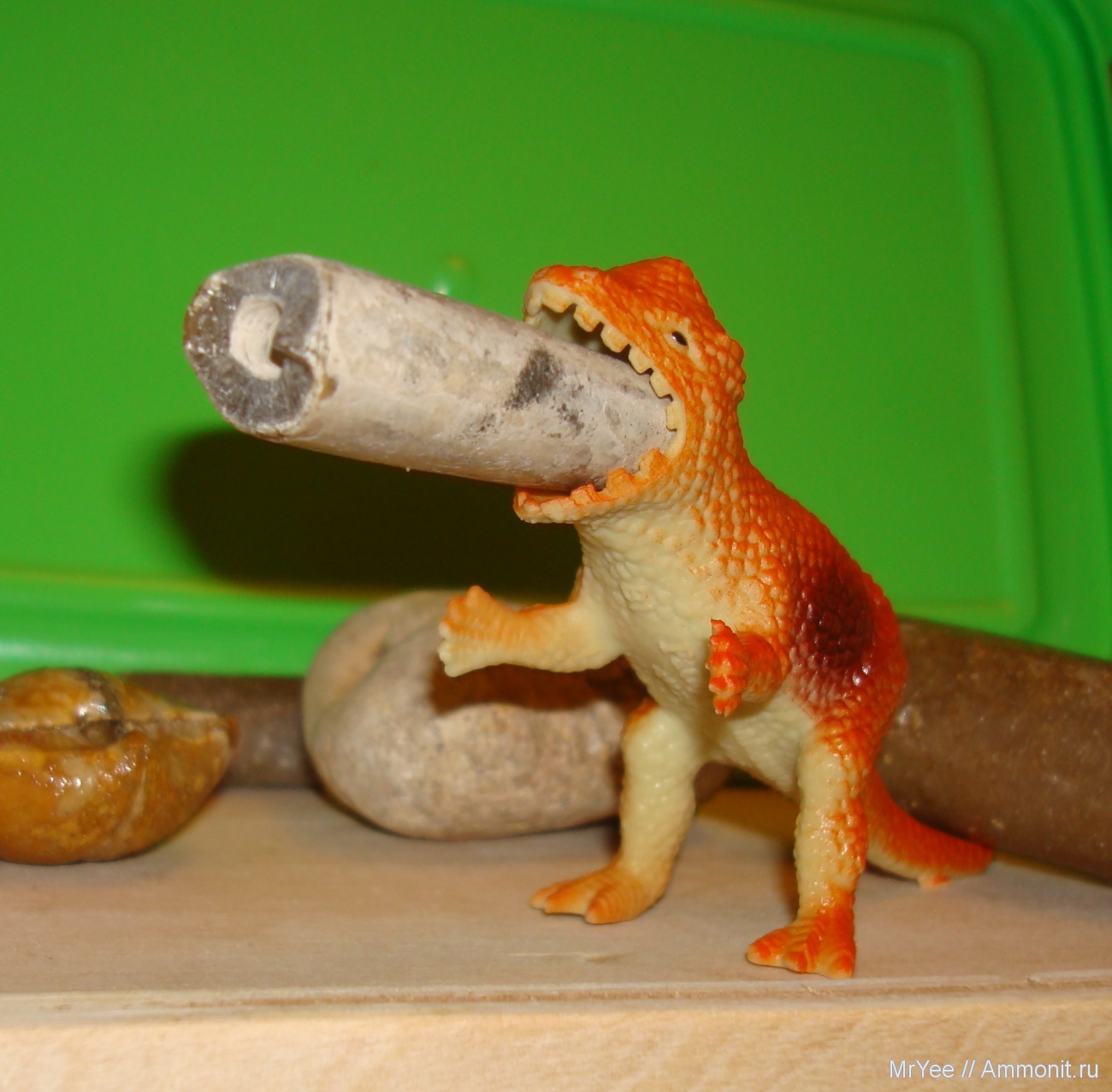 Эта фотография имеет весьма косвенное отношение к палеонтологии, но я нащёл весьма забавным то, что мой сын засунул ростр белемнита в зубастую пасть(Которой у него не было) игрушечного пахицефалозавра.