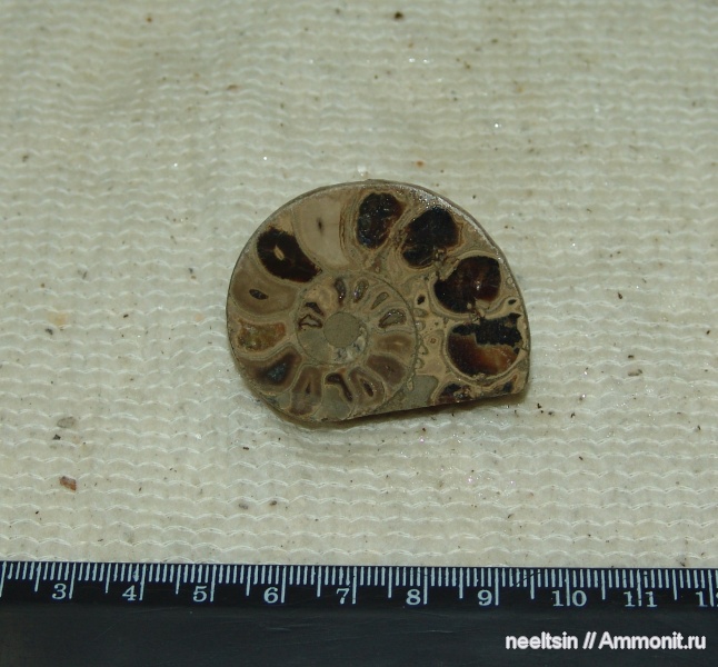 Распиленный аммонит остров Сахалин. В своё время аммониты на острове собирались в больших количествах, затем из них делали сувениры и шла бойкая торговля. Сейчас это всё сошло на нет, но у народа на руках ещё что то есть.
