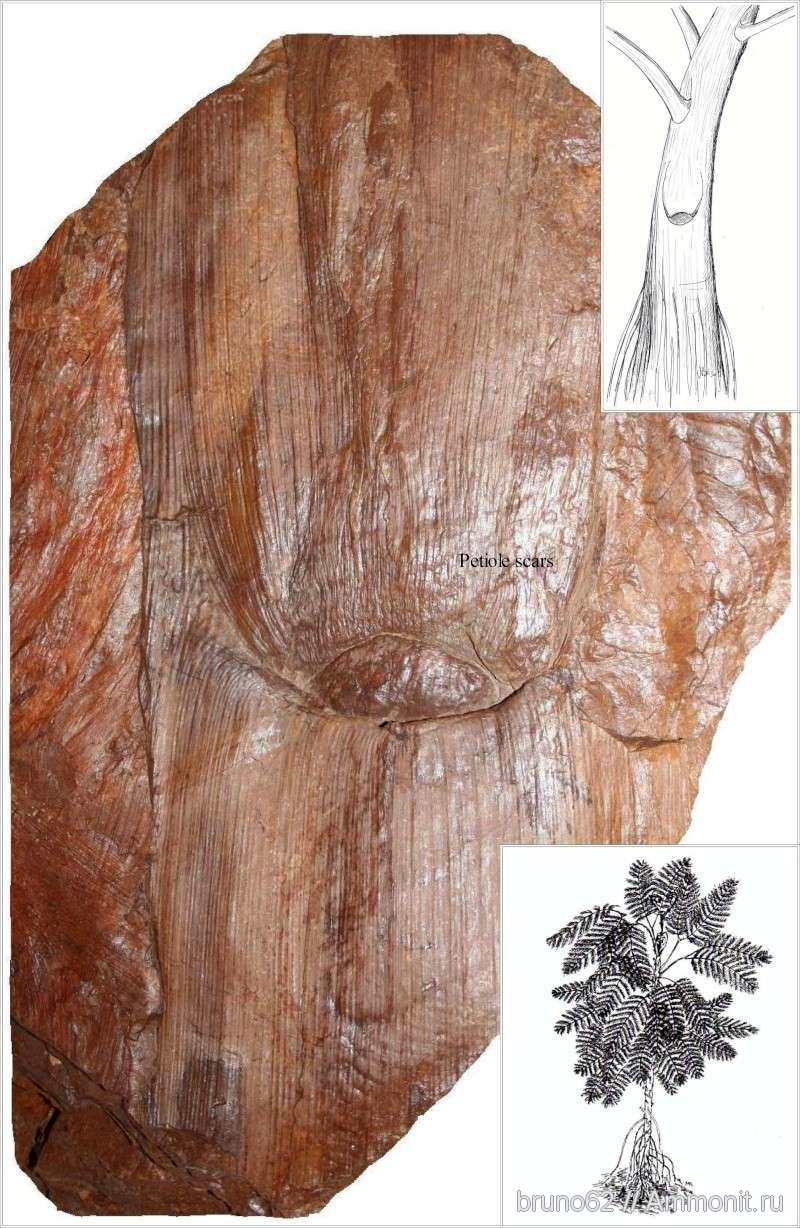Веточный рубец на стволе птеридосперма (компрессионный отпечаток). | ||||||