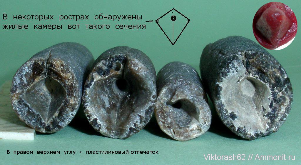 Попалось несколько штук фрагментов белемнитов вот с такими ромбическими камерами. Это другие виды или что-то другое?
