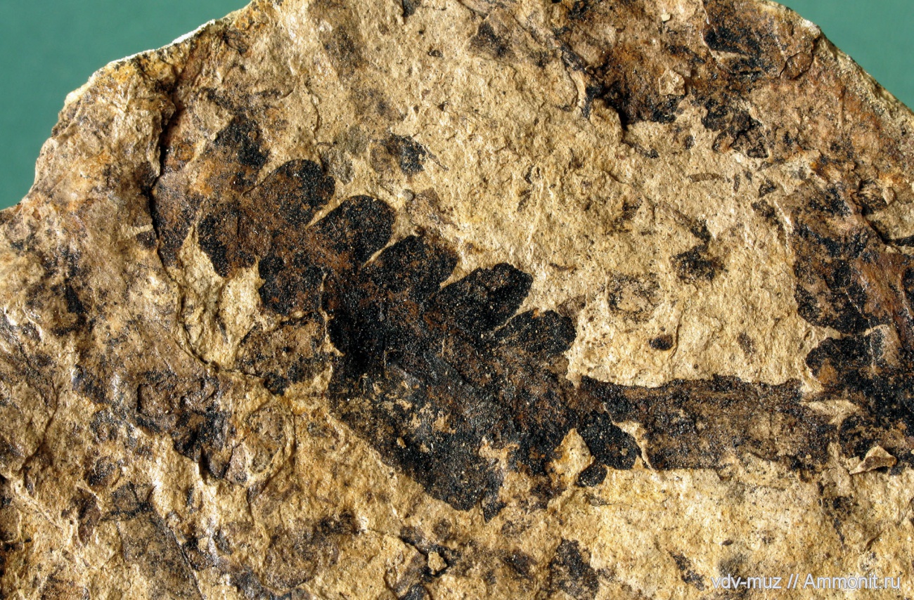 Фрагмент пера последнего порядка папоротника (Pecopteris cf. micropinnata Fefilova).