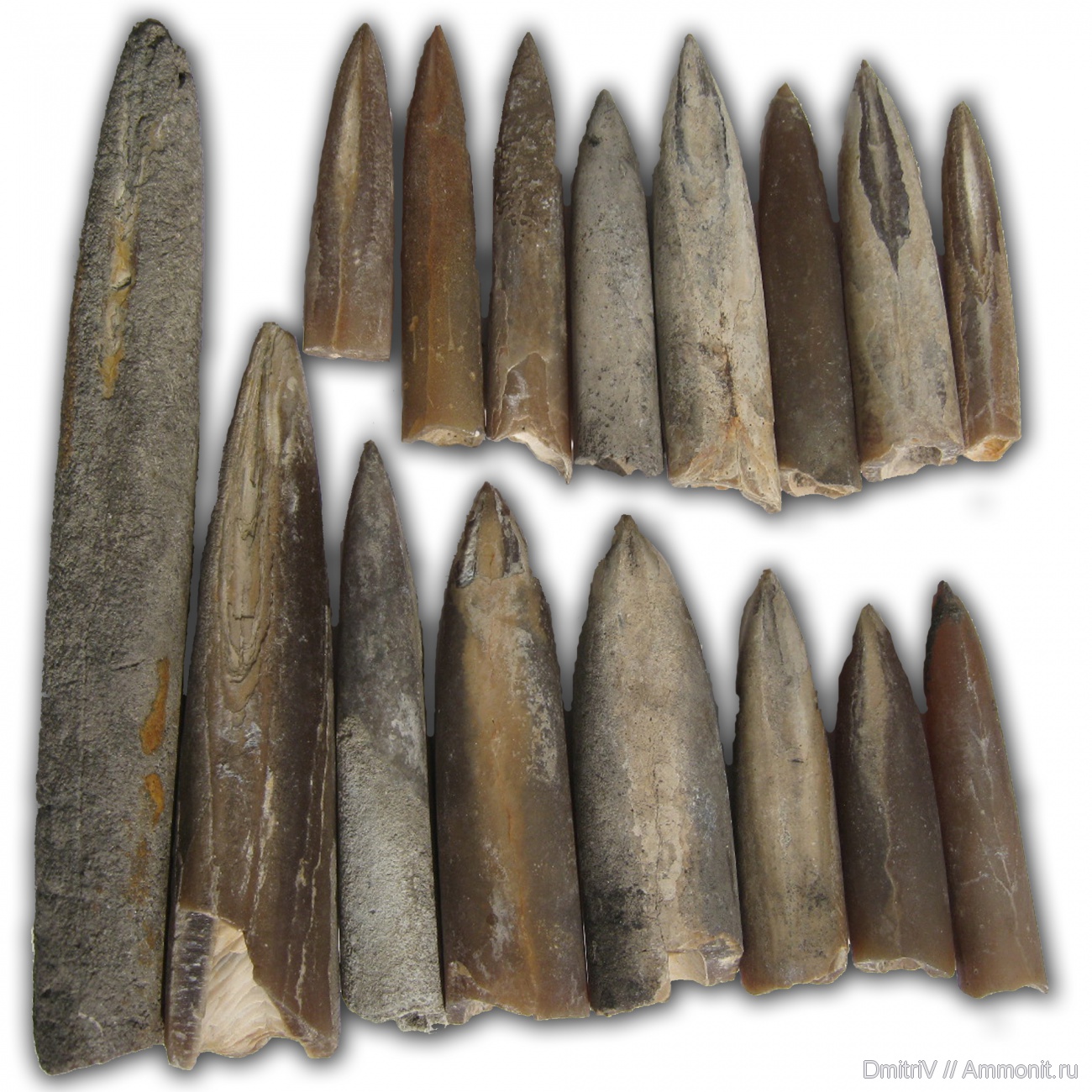 Ура, белемниты! Большинство вроде волжские из филей или мневников, а два больших слева наверное из Михайлова. Мне кажется самый длинный - келловейский, а поменьше может быть и оксфордский. Ну я могу и ошибаться, хоть я и страстный поклонник белемнитов))) | ||||||