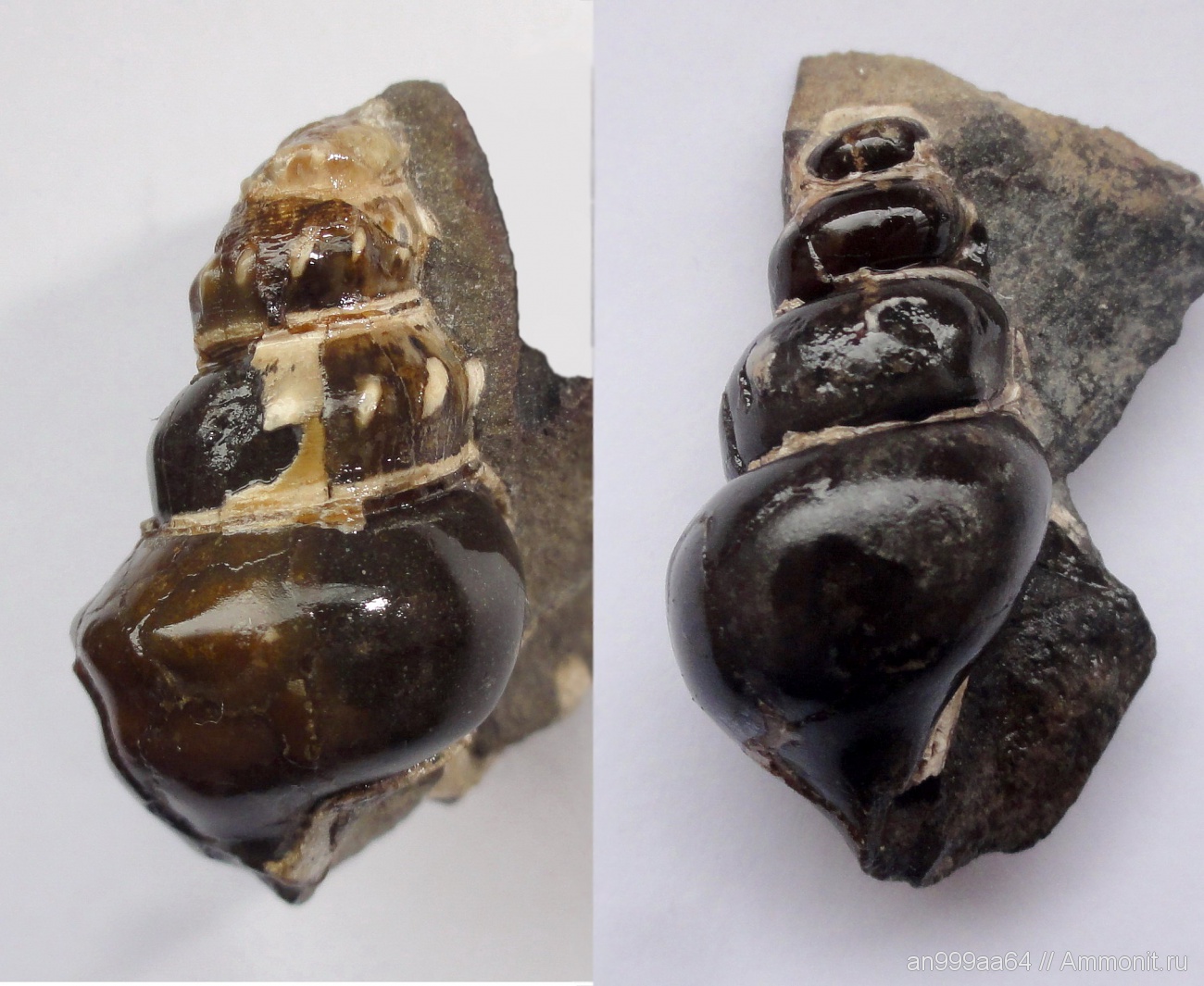 две гастроподы 25 и 26 мм, подарок Уважаемого Омара, на мой взгляд одинаковые, справа ядро, а у той что слева частично сохранилась оболочка раковины, буду рад определению