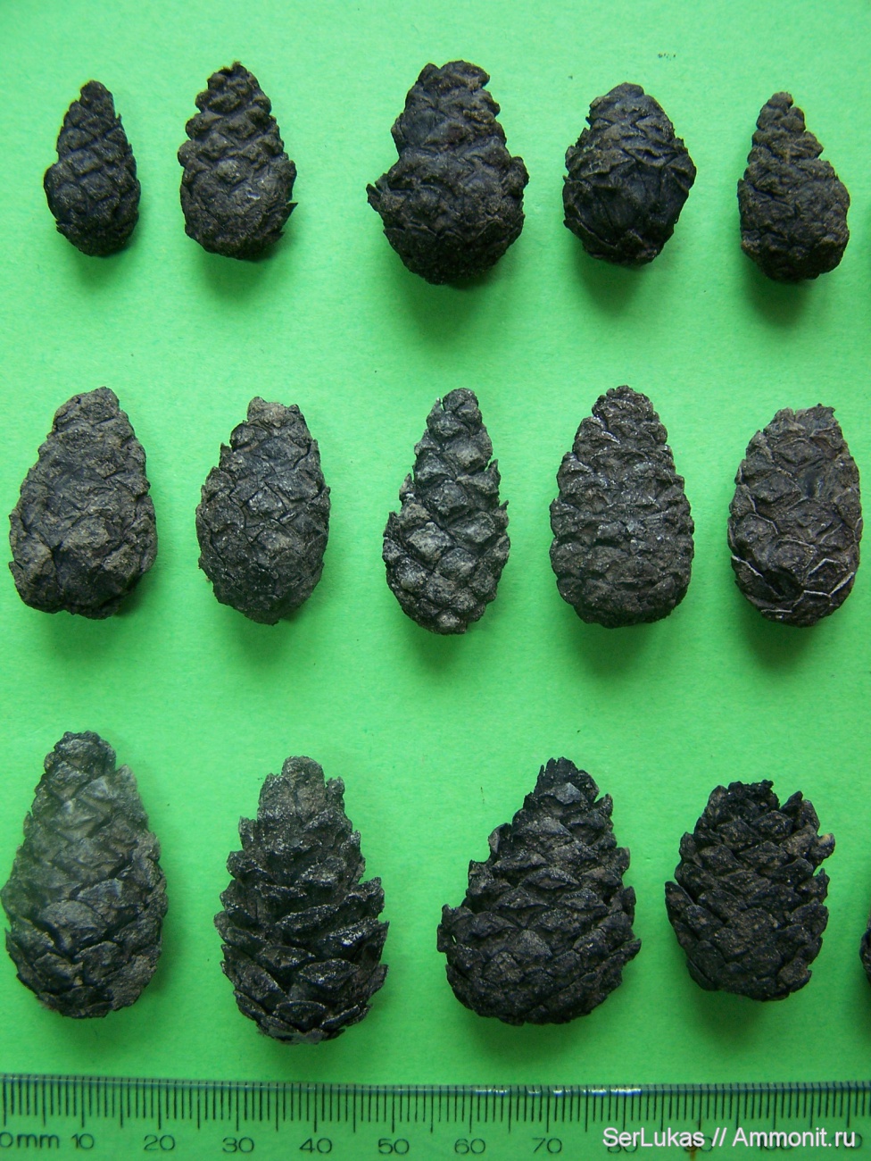 хорошие шишки .так и хочется их возле печки поставит чтоб открылись и семена высыпались это конечно же шутка .а в серёз очень похожи на современные сосновые шишки. | ||||||