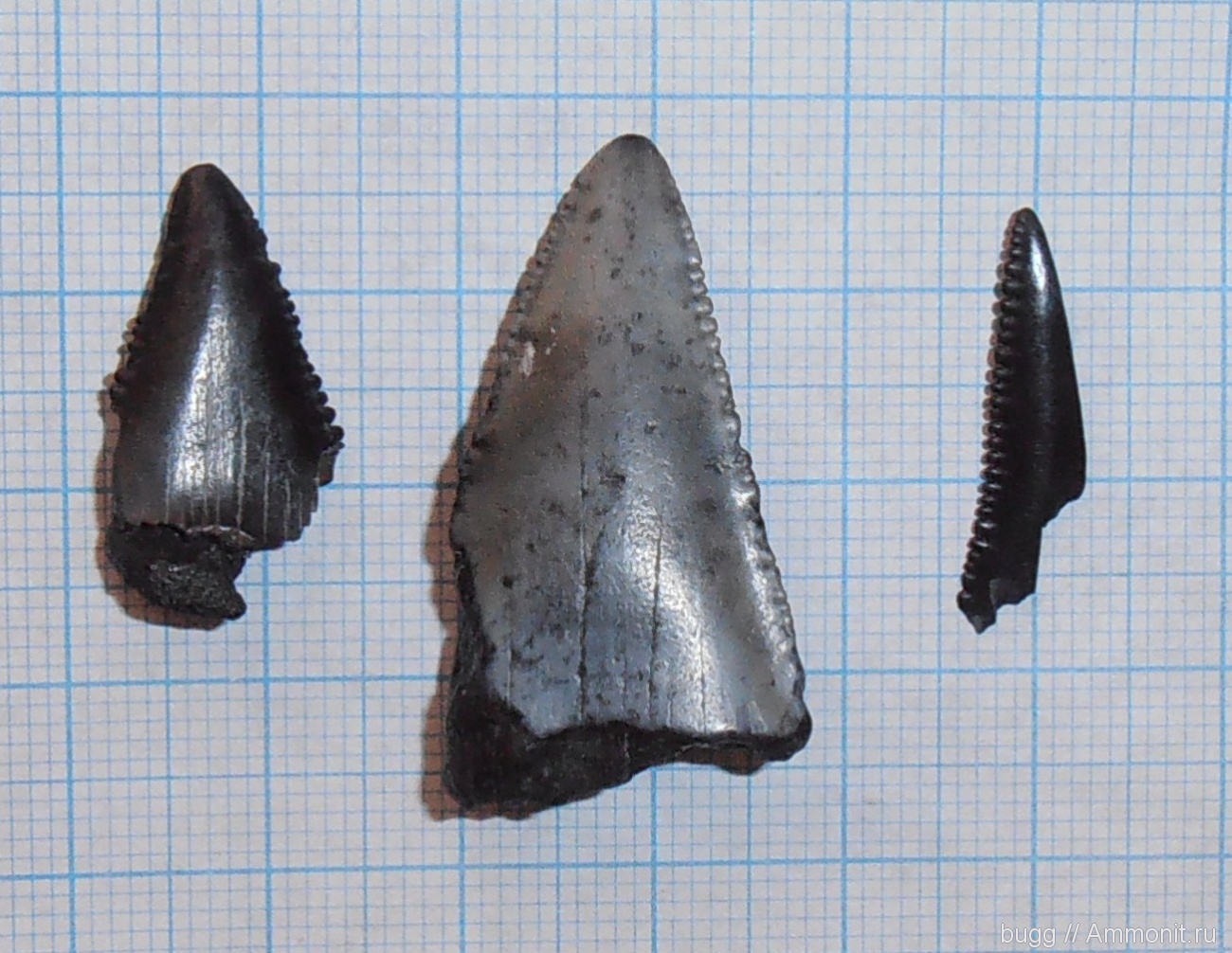 Слева направо: 1,3 - белая акула(Carcharodon carcharias), 2 - мегалодон(Carcharocles megalodon). Возраст - неоген:) | ||||||