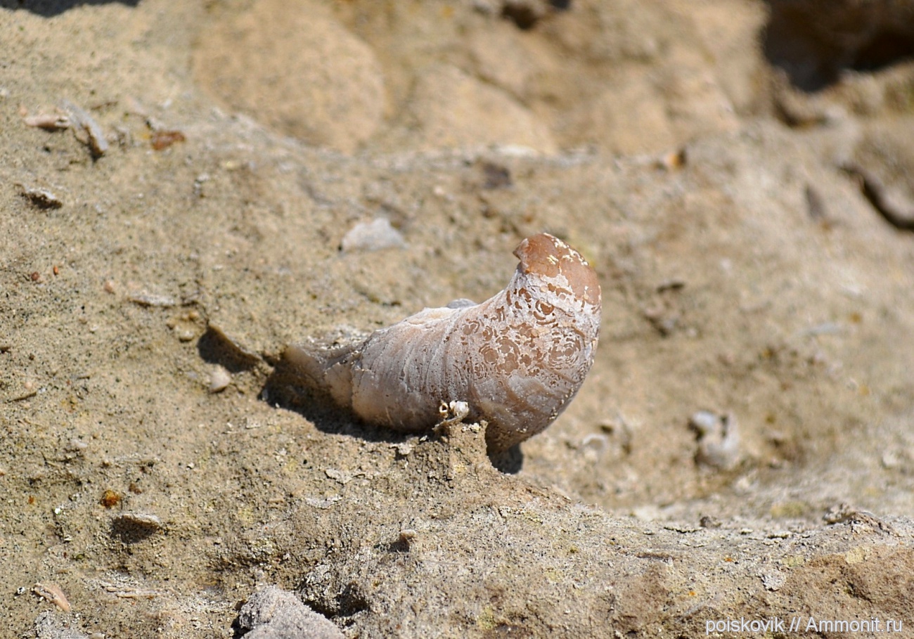 Двустворка, обнажившаяся в меловых отложениях в результате процессов выветривания.