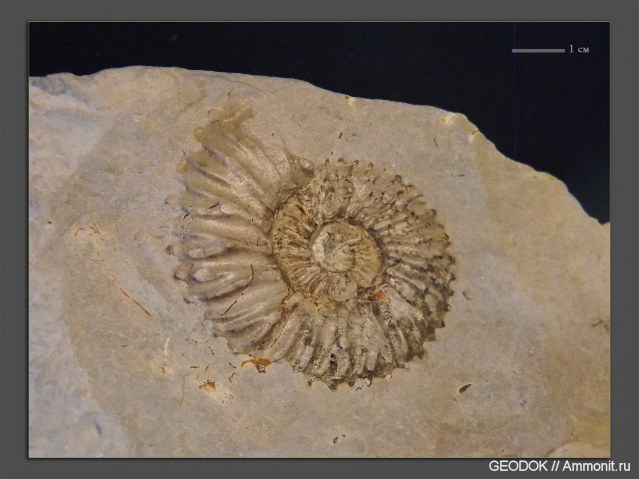 Этот аммонит происходит из пачки известняков, берриасского яр. одного из притоков р. Псекупс. Эти известняки содержат интересную аммонитовую фауну, единственный минус - их хорошая прочность. Приходиться сильно постараться молотком и зубилом, прежде чем в руках окажется образец.