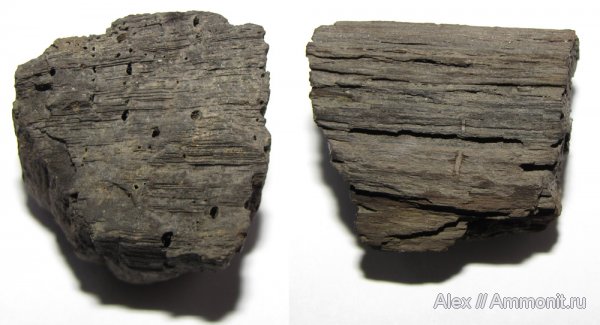 Небольшой кусок пиритизированного дерева, которое, судя по отверстиям, кто-то (какие-то насекомые) в свое время погрыз.