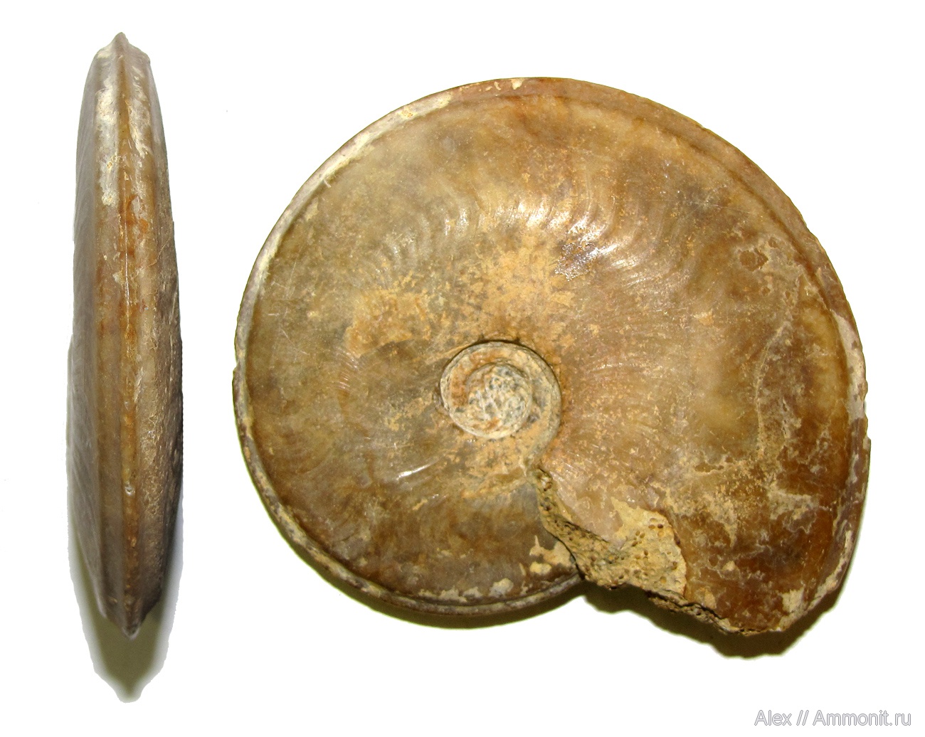 Это Hyperlioceras (Hyperlioceras) ex gr. subsectum (Buckman), нижний байос, зона Discites, подзона Subsectum.