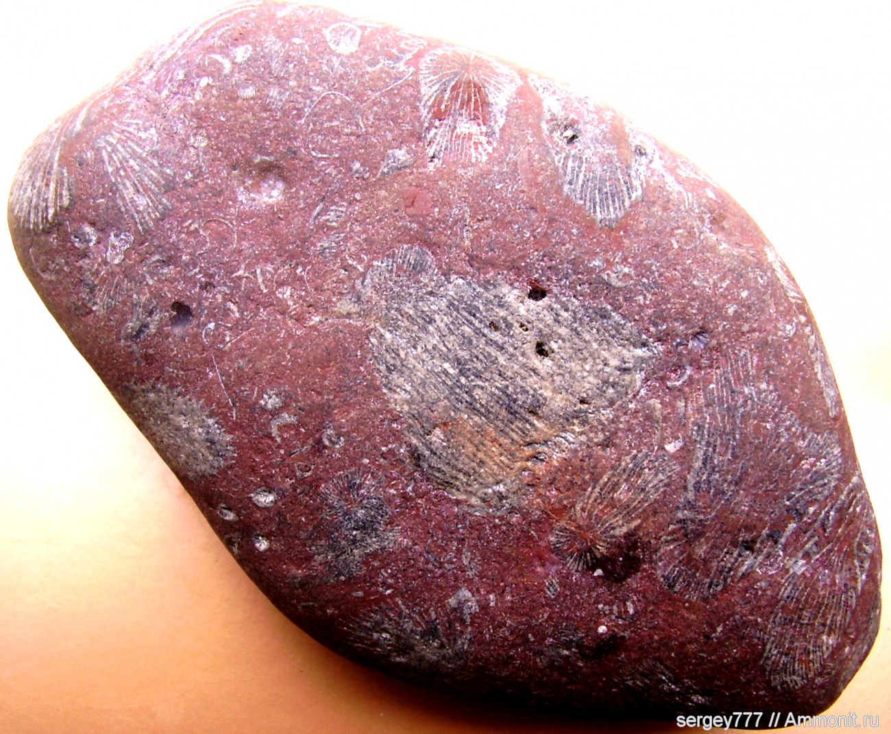 крупный окатаный камень с колонией юрских кораллов, размер 23 см