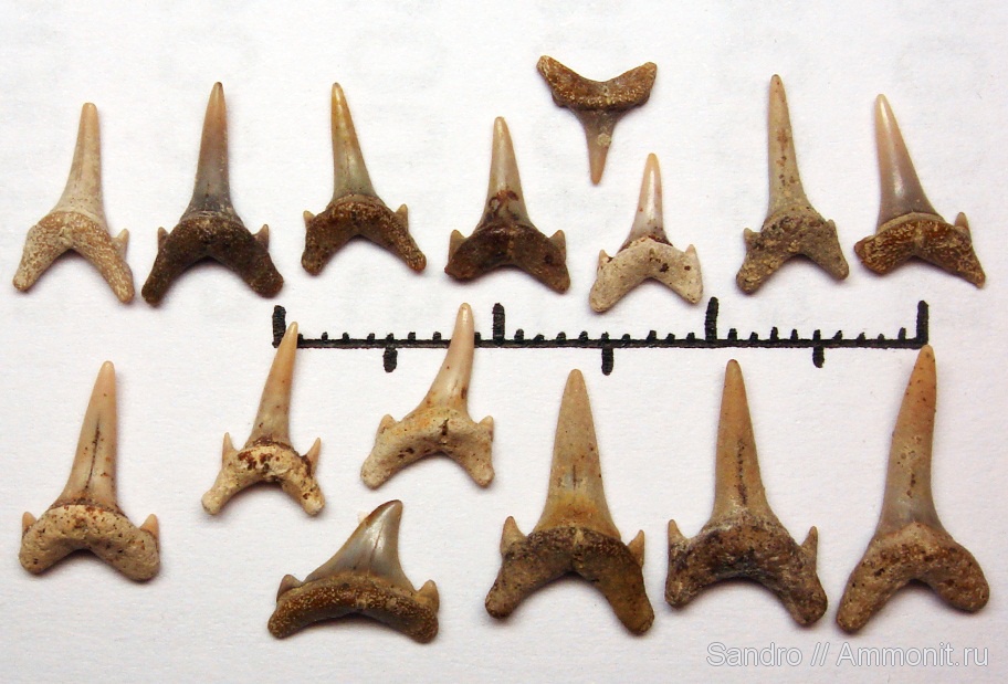 Зубы не крупных песчаных акул. Eostriatolamia sp относительно не плохой сохранности.