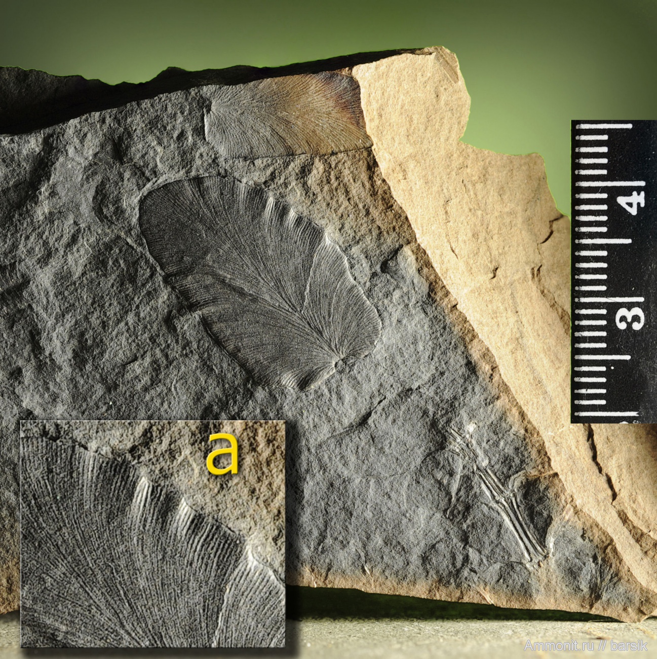 Похожий лист уже был в галереи "Гофрированный" Neuropteris. . У этого тоже завернутый край, как у настоящего зеленого листа. Наверно осадочные породы, которые покрывали этот образец на дне, представляли собой тонко (высоко) дисперсные образования (?). Это и позволило «законсервировать» лист в таком состоянии.