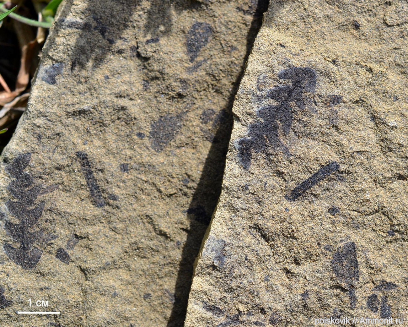 Обугленные остатки флоры в песчанике. Бухта Ласпи.