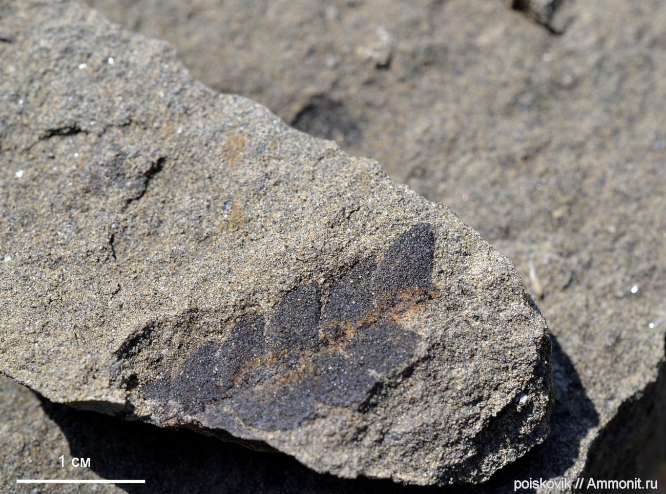 Обугленные остатки флоры в песчанике. Бухта Ласпи.