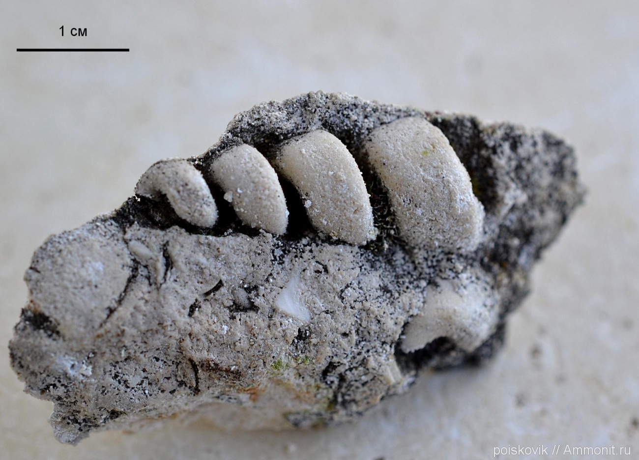 Ядро гастроподы (длина - 3см) из меловых отложений Инкерманского карьера