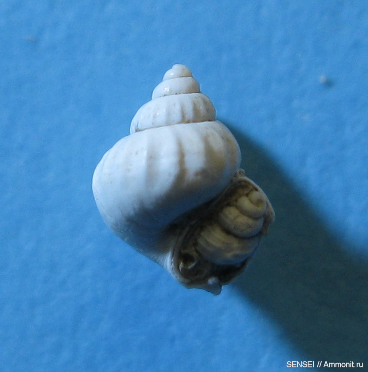 Очередная неизвестная мне гастропода,сегодняшняя находка,к тому же еще и с пассажиром. Размер 4мм.