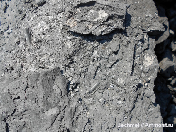 10 см - это уже крупные белемниты, а я имею ввиду прослойки очень мелких по 1-2мм в диаметре. Точно длину не знаю, не размывала. Попробую.У меня есть фото такой мелочи в глиняном прослое в шахте. Посмотрите. | ||||||
