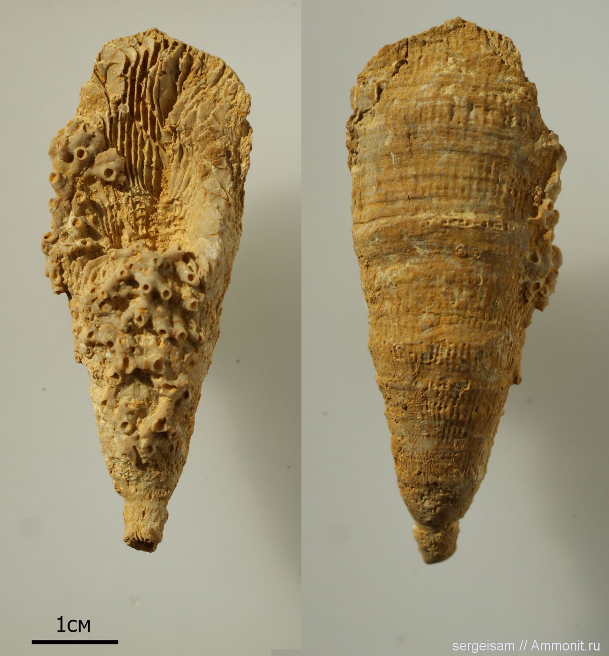 Одиночный коралл Gshelia rouilleri и прилепившаяся к нему Aulopora macrostoma.