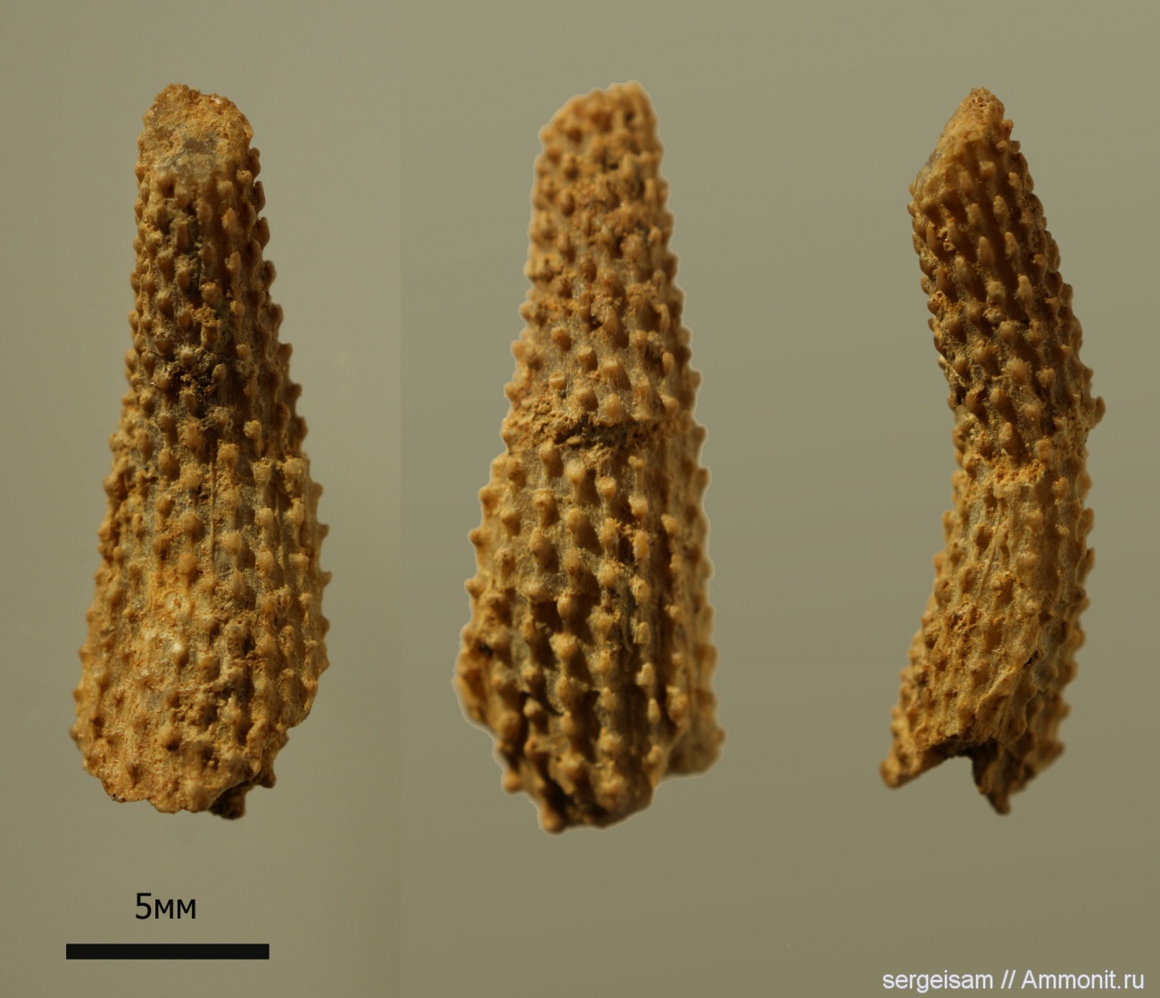 Этот обломок иглы морского ежа найден в Гжели, в районе стратотипа.