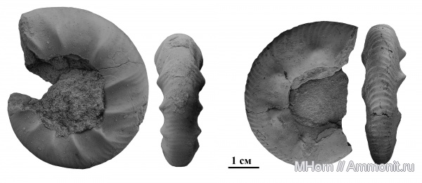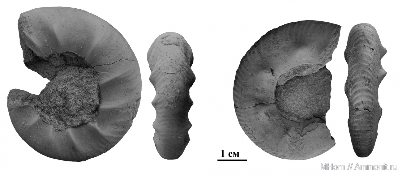 Эти своеобразные Kachpurites встречаются в Кашпире в нижнем слое зоны Fulgens. Подобные же формы (такие, как образец слева) встречаются также в нижних ~0,2 м зоны в Еганово. В Мневниках, судя по всему, в низах Fulgens встречаются в основном гладкие Kachpurites, а такие бугристые появляются примерно в 0,3 м выше подошвы