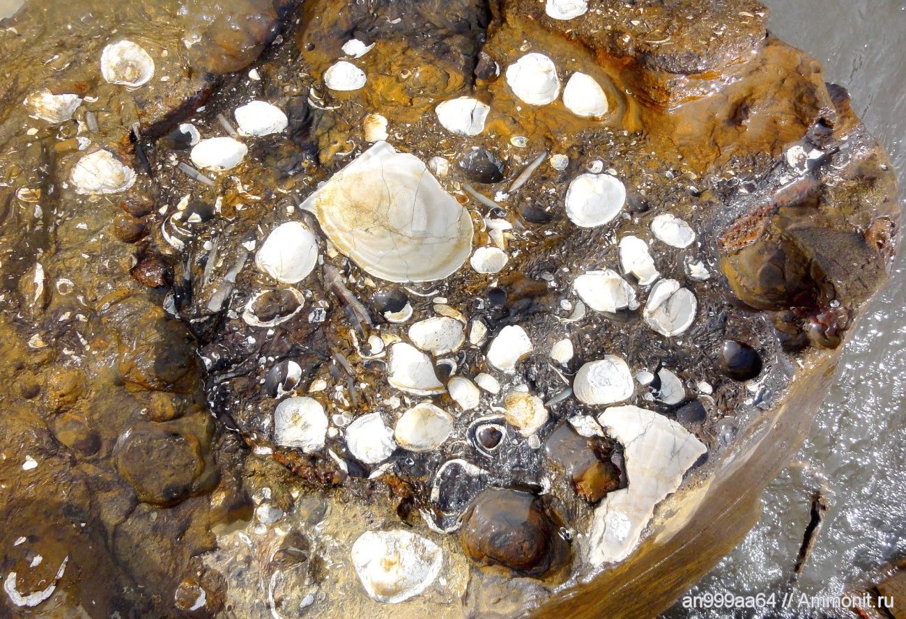 в барреме Черного Затона практически не встречаются аммониты, в основном лопатоногие моллюски, двустворки, белемниты, совместная поездка вместе с ВМ и Романом, размер крупной двустворки см 15 (чуть больше ладони)
