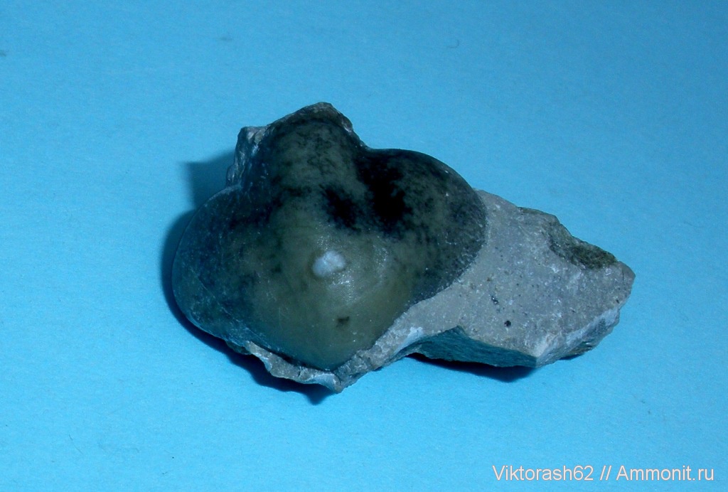 Эта оригинальная нижнеюрская брахиопода найдена в Приборжавском карьере (Закарпатье). Размер 12 мм.