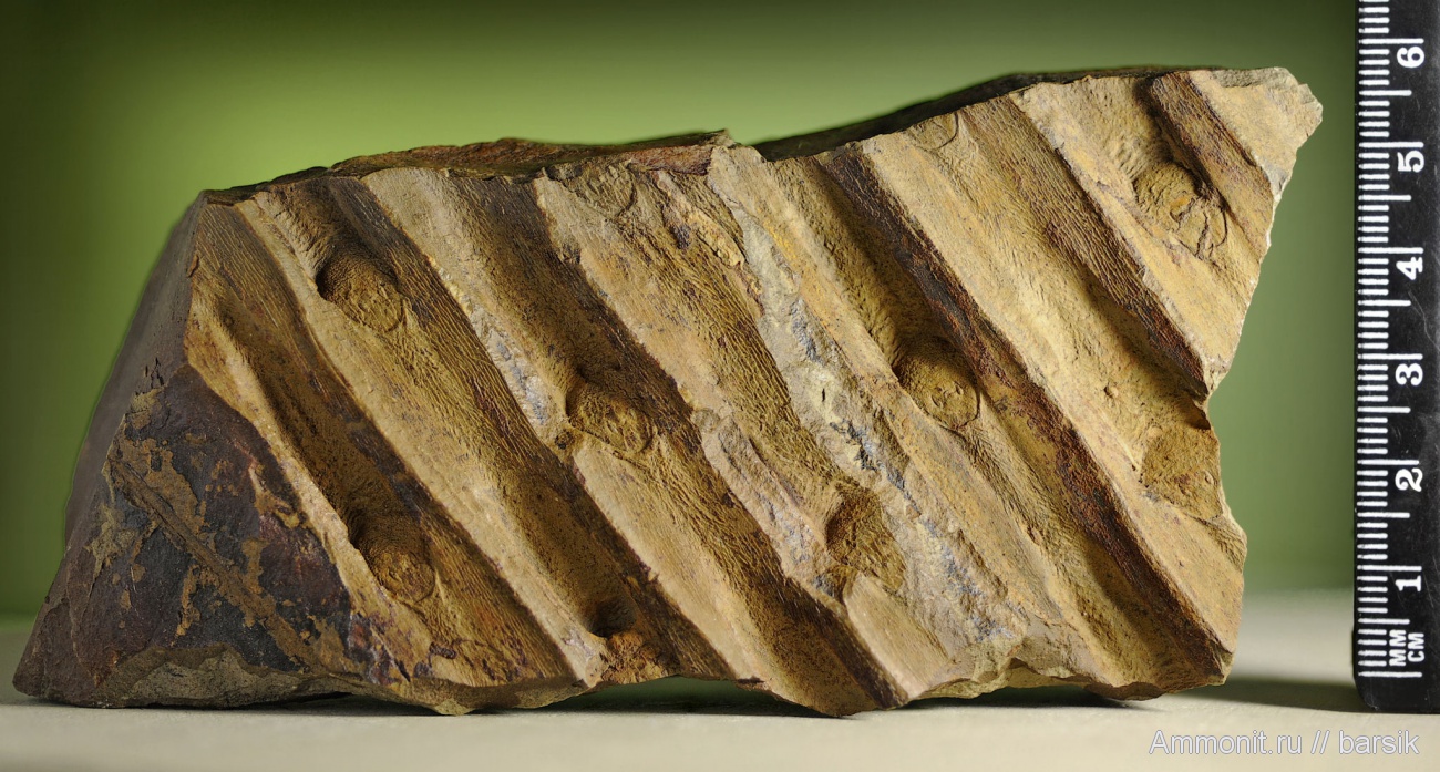 Небольшой фрагмент негативного отпечатка лицевого слоя. Наверное за счет глинистой корочки на песчанике и получилась такая высокая детализация сохранения. На дополнительном снимке листовой рубец крупным планом - фото