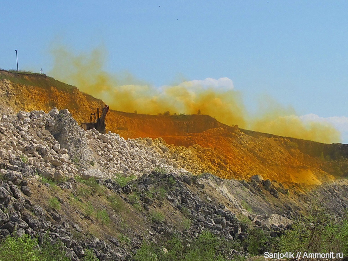 А что за оранжевая пыль от взрыва? Там породы окислами железа насыщены? | ||||||