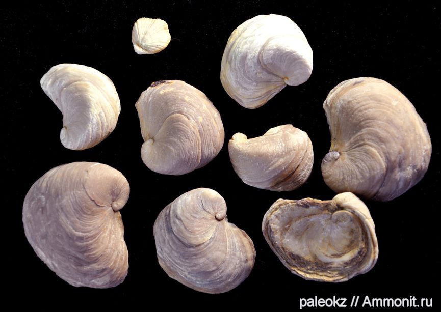 Как же двустворки, если ось симметрии вдоль не провести. Да и поперек не особо получается. Нижняя справа показана с обратной стороны с полностью сохранившейся раковиной. | ||||||