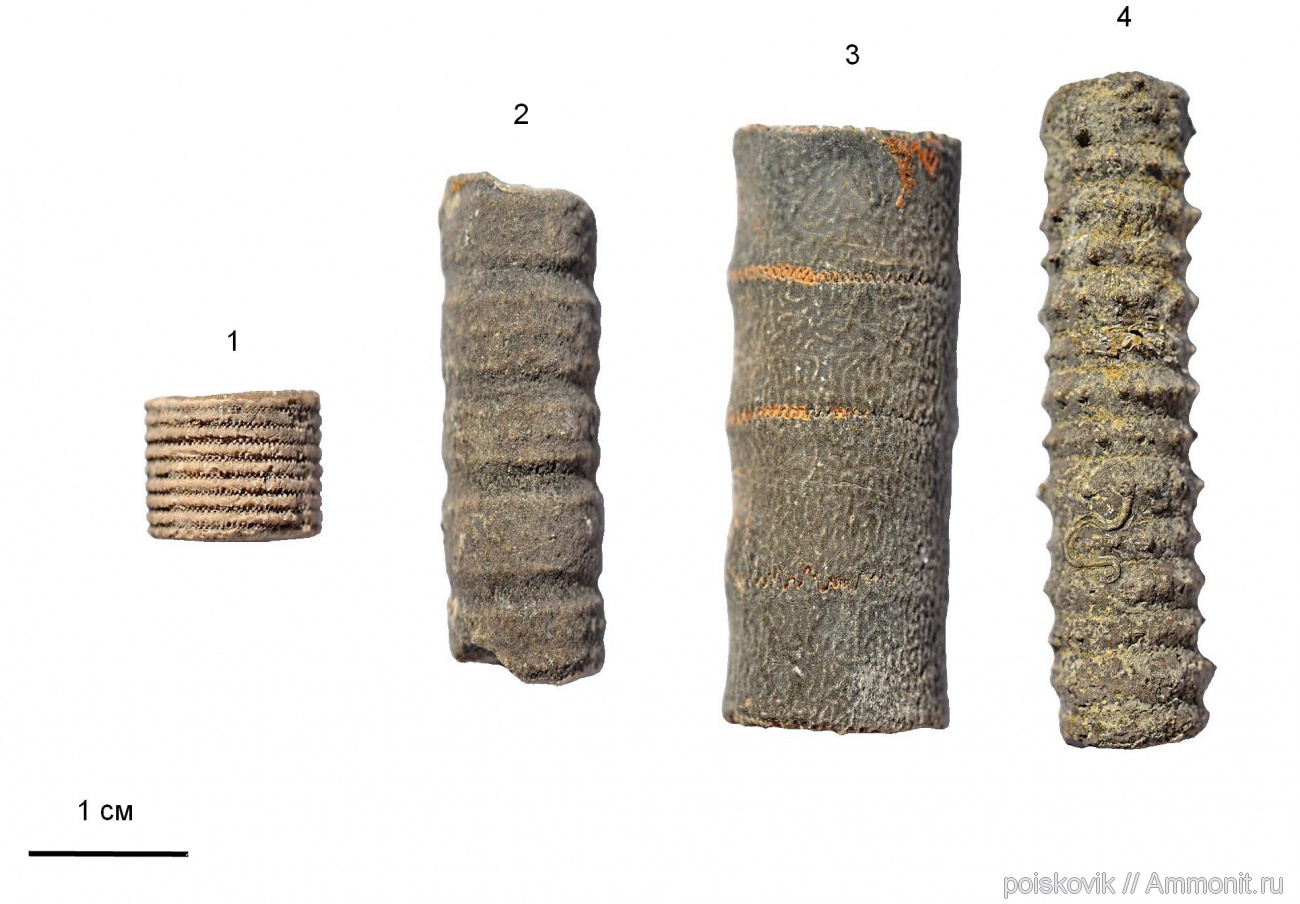 Фрагменты стеблей морских лилий из юрских отложений в окресностях поселка Новый Свет.
