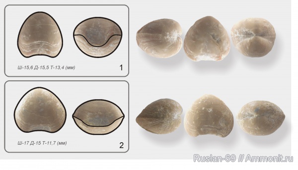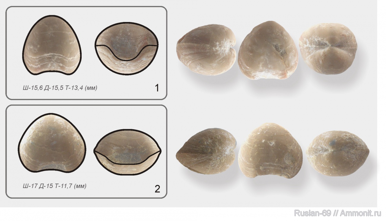 Вот такие две брахиоподы Porambonites с разной формой раковины и синуса