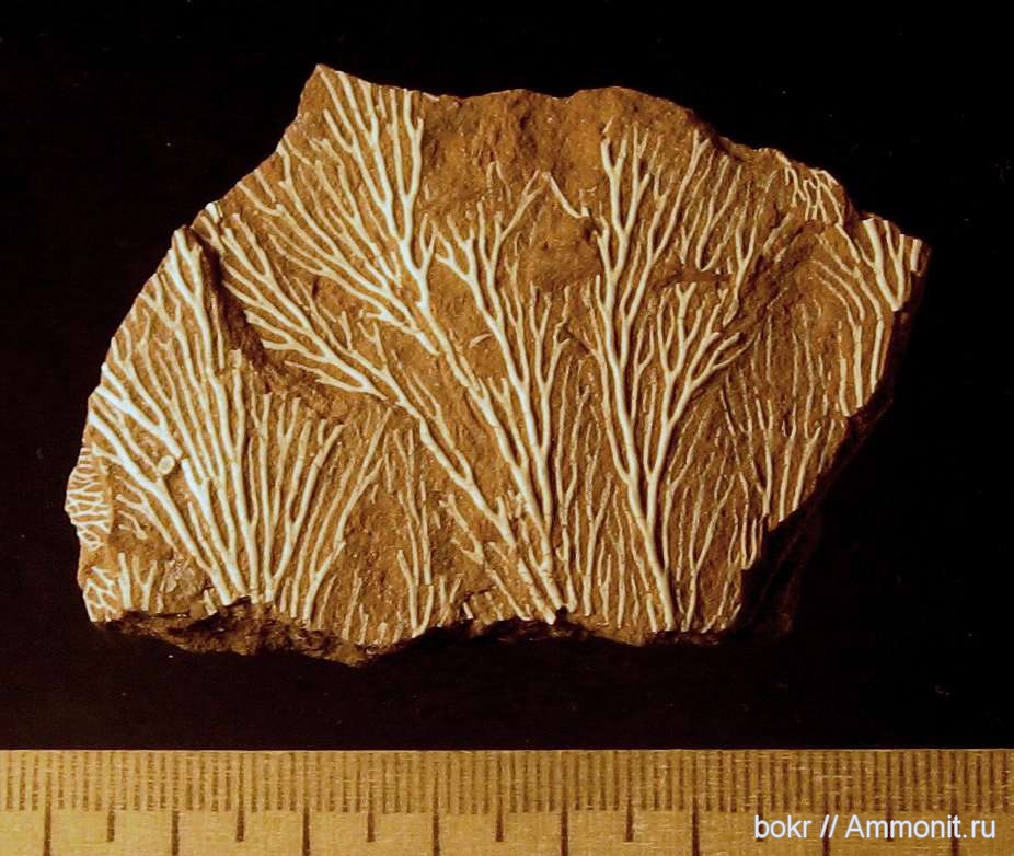 Колония ветвистых мшанок, обратная сторона. (Зоеции обращены к сланцу).