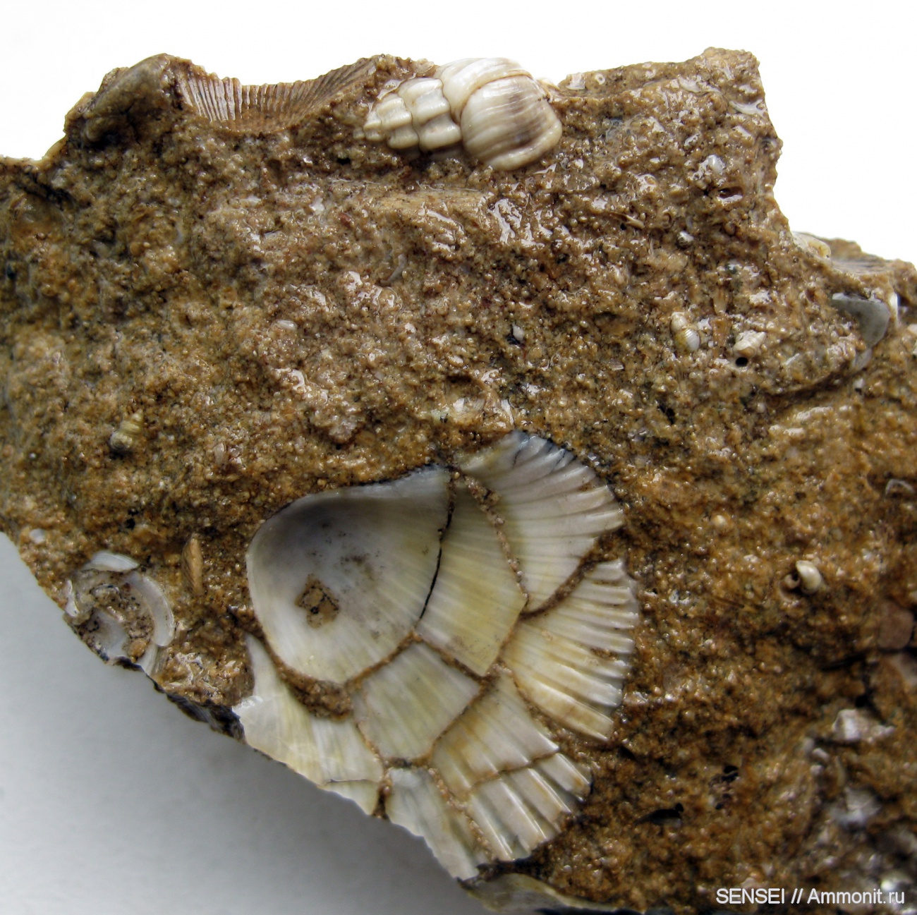 Раковина двустворки оказалась раздавлена породой,в то же время более крепкая раковина брюхоногого моллюска Nassa,с рёбрами жесткости,осталась идеальной сохранности.
