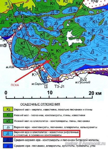 Конечно меньше чем в северном Крыму. Байдарская долина вообще непонятного происхождения... Но кое-что все-таки есть))) Окаменелости Правда как у Вас писали это больше собакиты ))). А вообще я хотел маленькую публикацию-заметку сделать по креплению внутренних перегородок аммонитов на основе материала с ПСКА. Но фото Вы не пустили... | ||||||